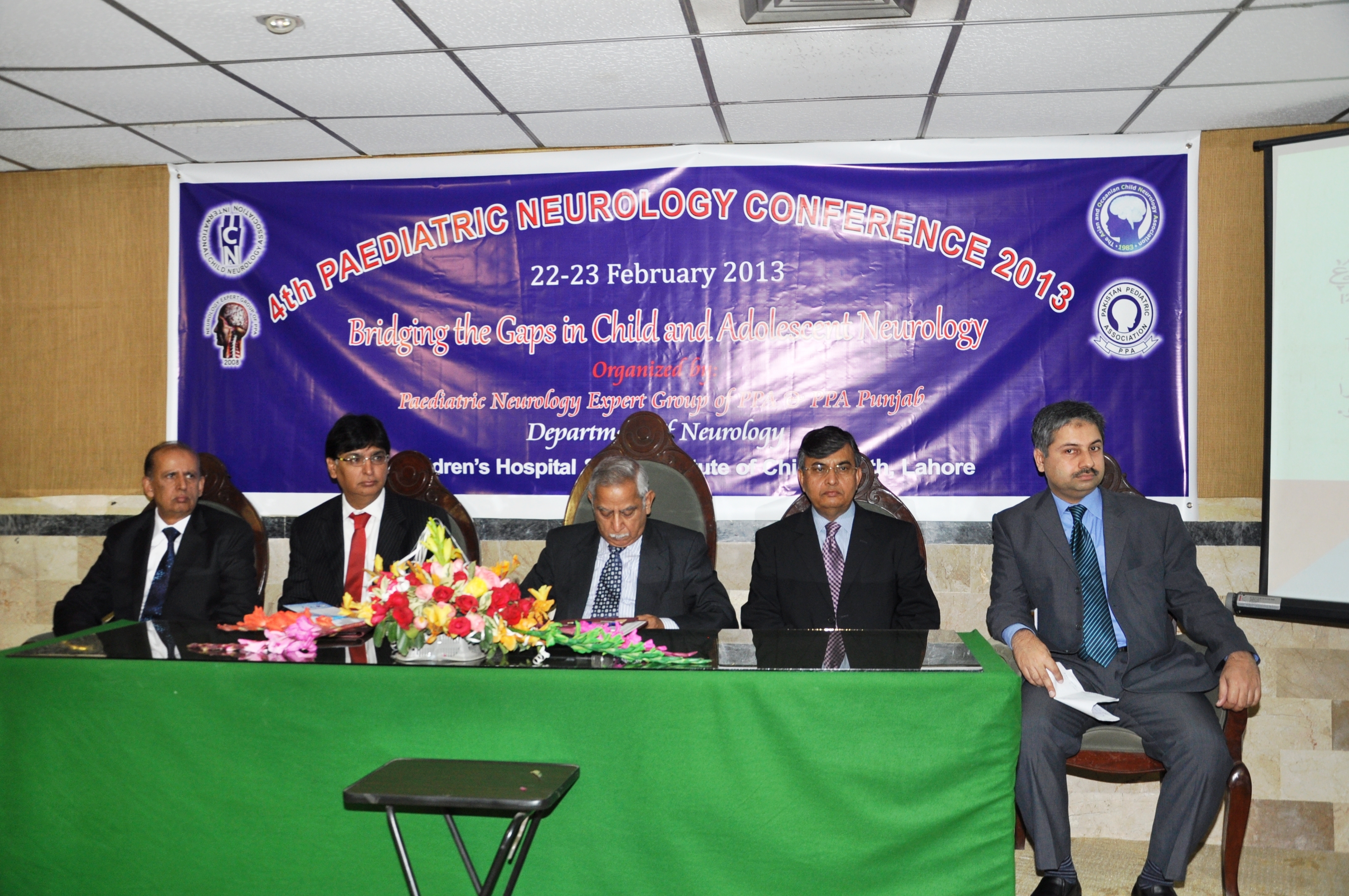 4th Child Neurology Conference was attended by more than 300 participants. There were 25 state of art lectures on various topics of child neurology. More than 10 free papers were presented as platform presentations and 10 were presented as posters. Ther were 5 workshops on EEG, EMG/NCS, Botox administration in Cerebral Palsy, Status Epilepticus and raised ICP management.